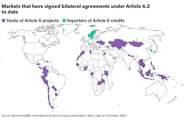 Parties agreed last year at COP29 to defer negotiations on Article 6.2 until 2028, so no material progress on the infrastructure or operation of those deals is expected at this year’s United Nations talks in Belem. Putting a hold on negotiations, however, does not stop governments from making more deals signaling their intentions to trade ITMOs.